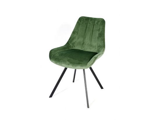 Moderne eetkamerstoel met plywood zitting, poten van metalen rechthoekig profiel.